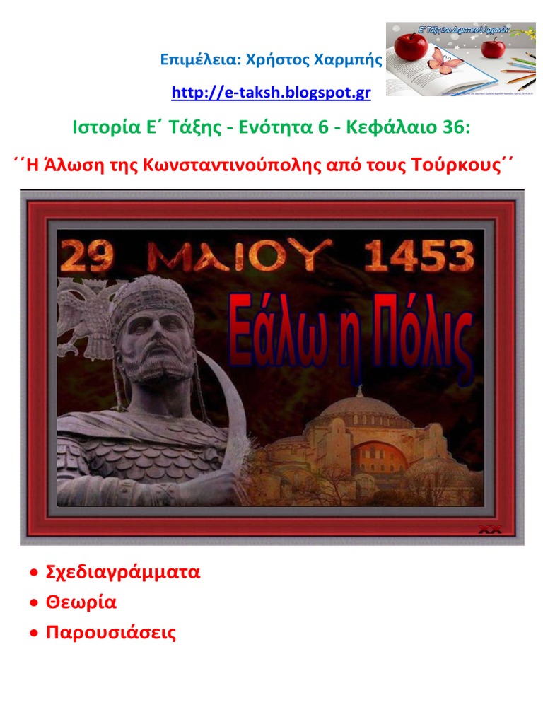 Αλωση Κωνσταντινουπολησ 1453 - H Alwsh Ths Kwnstantinoypolhs Trith 29 Maioy Toy 1453 Giannhs Nikoy Zwgrafos : Στις 29 μαΐου 1453 η κωνσταντινούπολη, η πρωτεύουσα της χριστιανική ρωμαϊκής αυτοκρατορίας, έπεσε στα χέρια των οθωμανών τούρκων.